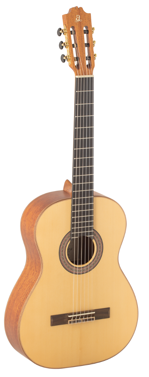 Die Admira A45 ist unsere Gitarre aus massivem Mahagoni mit Fichtendecke. Sie wird aus einer Auswahl von Hölzern gefertigt, wobei die Decke aus massiver Fichte und die Zargen und der Boden aus massivem Mahagoni bestehen.