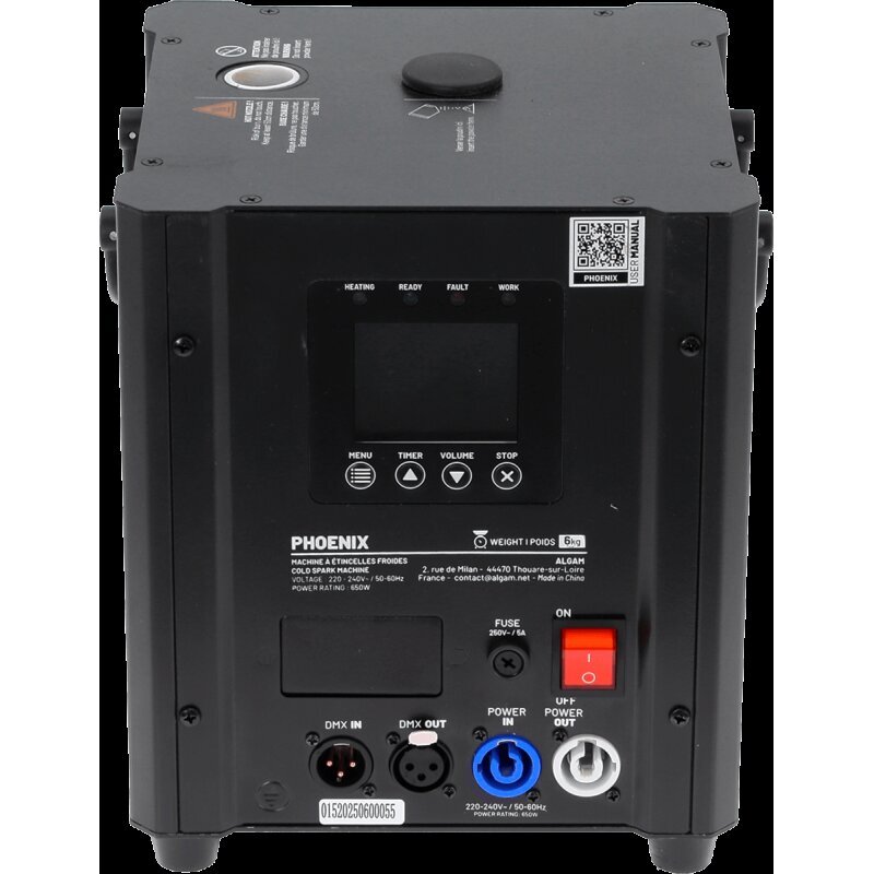Verleihen Sie Ihren Veranstaltungen einen Hauch von Magie! Erzeugen Sie mit dieser 650W Kaltfunkenmaschine in nur 4 Minuten einen spektakulären Effekt. Mit einer Projektionshöhe von bis zu 5 Metern und der Steuerung per DMX oder Fernbedienung wertet der Phoenix Ihre Shows sicher auf – ohne Hitze oder Rauch.