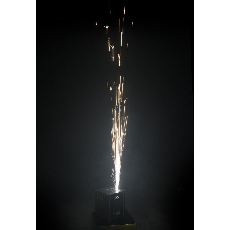 Kompakt (6 kg) und einfach zu bedienen, wird es mit 200 g Kaltfunkenpulver (optional erhältlich) betrieben. Perfekt für Hochzeiten, Konzerte, Bühnenauftritte und unvergessliche Partys.