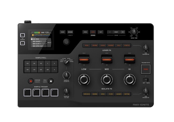 Der 3-Band-FX-Bereich umfasst Lever FX und Isolate FX, und man kann beide auf die Hoch-, Mittel- oder Niederfrequenzbänder anwenden.