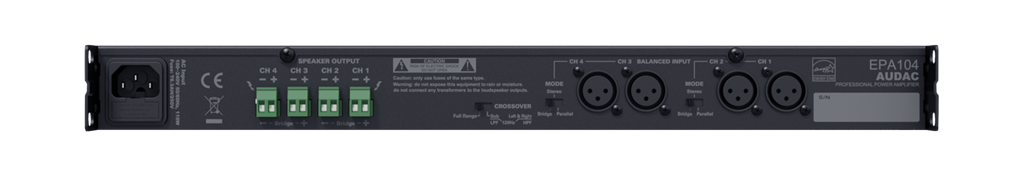 Diese energieeffiziente Stereo-Endstufe schaltet automatisch auf Standby, wenn kein Audiosignal anliegt (weniger als 1 Watt Stromverbrauch im Standby-Modus). Das geringe Gewicht und die kompakten Abmessungen machen das 1-HE-Rack-Gerät zur idealen Lösung für mobile Einsätze und Festinstallationen, und die Class-D-Technik gewährleistet einen exzellenten Wirkungsgrad sowie eine herausragende Klangqualität. Darüber hinaus sorgt das vollständig passiv gekühlte Design für maximale Zuverlässigkeit bei minimalem Wartungsaufwand. Das 4-Kanal-Konzept bietet zudem die Möglichkeit, jeweils zwei Kanäle als unabhängige Stereo-Kanäle zu nutzen. In Kombination mit der integrierten aktiven Frequenzweiche empfiehlt sich diese Endstufe als kompakte Komplettlösung für Stereoeinsätze mit Subwoofer. Dank verschiedener Spezialfunktionen und fortschrittlicher Schutzschaltungen ist die Endstufe optimal gegen Gleichstromfehler (DC), Kurzschluss, Überhitzung und Überlastung geschützt. Die Eingänge sind als symmetrische XLR-Anschlüsse ausgeführt, außerdem stehen XLR-Ausgänge zum Durchschleifen des Signals (Link-Through-Funktion) zur Verfügung. Die Lautsprecher werden über Klemmleisten angeschlossen.