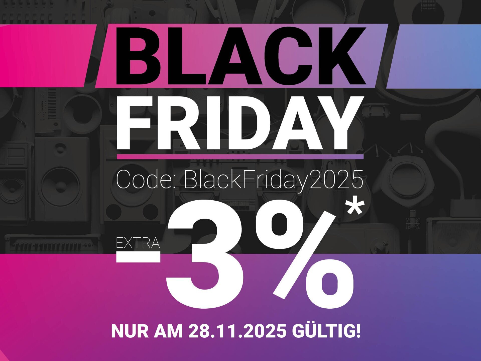Erlebe unsere exklusiven Black-Friday-Deals am 28. November! Sichere dir starke Angebote auf eine große Auswahl an Instrumenten, Zubehör und PA-Equipment – perfekt für Musiker:innen, Vereine, Musikschulen und Tontechniker. Nur für kurze Zeit und nur solange der Vorrat reicht!