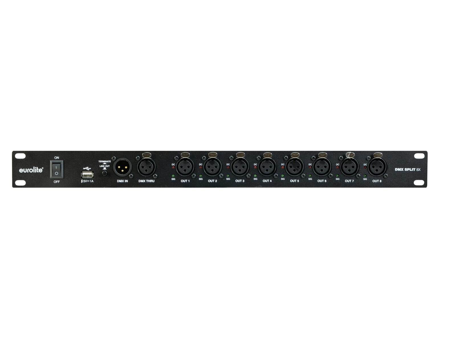 - DMX-Verteiler für die Aufteilung eines DMX-Eingangssignals auf 8 DMX-Ausgänge