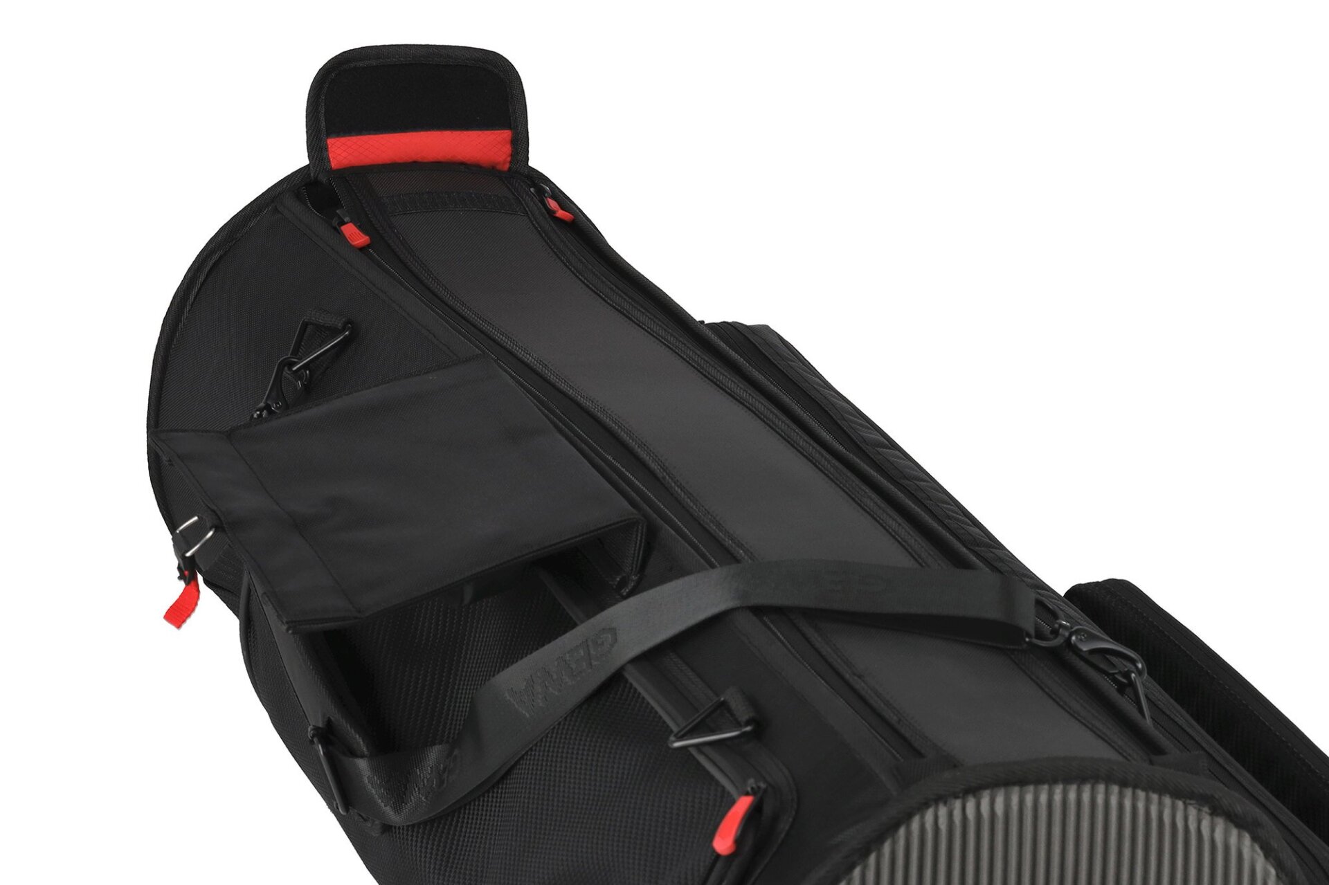 Das exklusive Side Protection System (SPS) bietet enormen Schutz durch seitliche Fiberglas-Einlagen und 20 mm starken High-Density-Schaumstoff. SPS Brass-Taschen sind zusätzlich im Bereich des Schallbechers verstärkt.