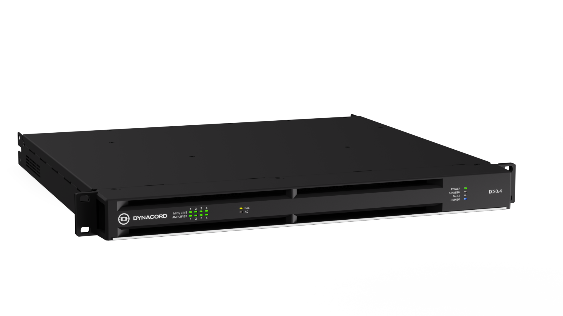 IX30:4 verwendet die patentierte ecoRAIL-Technologie von Dynacord zur Optimierung des Energieverbrauchs. ghostPOWER über PoE sorgt dafür, dass sämtliche Signale für DSP, Dante-Netzwerk und Mikrofon-/Line-Eingänge –unabhängig von der Netzstromversorgung – aufrechterhalten werden. Eine integrierte TaskEngine, die von vom MXE DSP abgeleitet ist, ermöglicht Systemautomatisierung, Scheduling, Steuerung und Drittanbieterintegration.