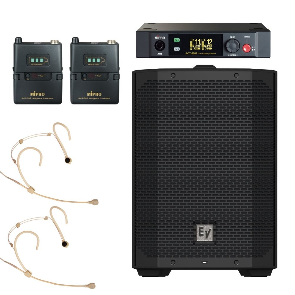 Das mobile Akku-PA-Duo-System mit zwei Funk-Headsets ist die perfekte Lösung für alle, die maximale Bewegungsfreiheit und hochwertige Sprach- bzw. Gesangsbeschallung im Team benötigen. Zwei leistungsstarke EV Everse 8 Lautsprecher liefern kraftvollen Sound und zuverlässige Energie für mobile Einsätze.