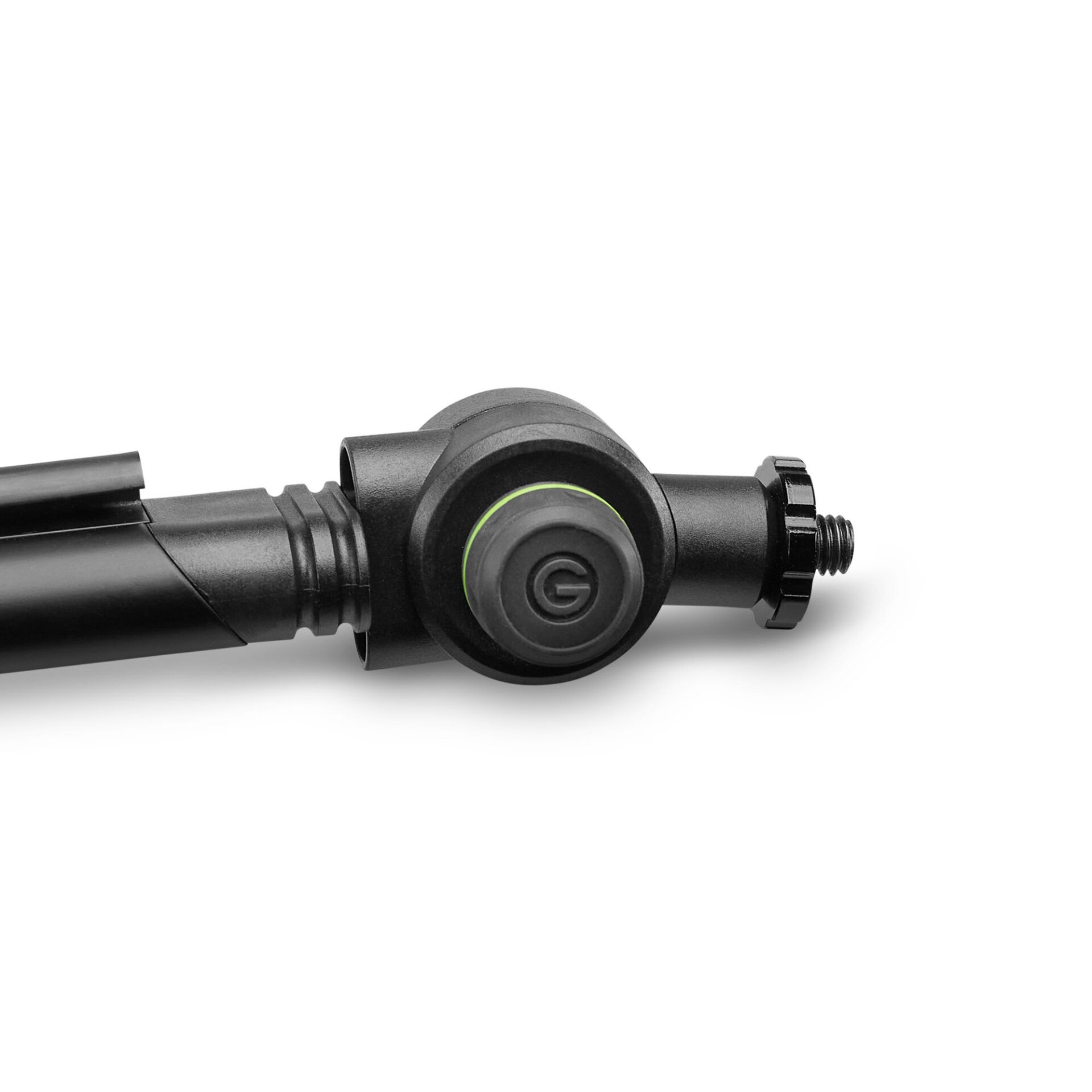Über drei Gelenke lässt sich der Tisch-Mikrofonarm in jede gewünschte Position bringen. Eine Besonderheit hat sich Gravity® zudem bei der Vorrichtung für die Mikrofonaufnahme einfallen lassen: ist das Mikrofon einmal mitsamt Klemme oder Spinne aufgeschraubt, kannst Du die gesamte Mikrofonaufnahme mit einer Hand herausziehen und in 90°-Schritten drehen. Anschließend rastet die Aufnahme automatisch wieder ein. Warum ist das so besonders?
