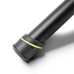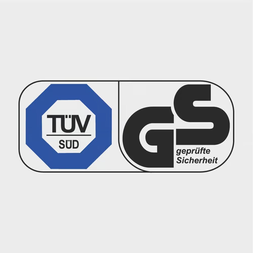 Das Auszugrohr wird mit einer griffigen Knebelschraube und Sicherungsstift arretiert. Das Kurbelstativ ist in der Höhe von 1,5 m bis 2,4 m verstellbar. Der Ständer ist TÜV/GS zertifiziert.