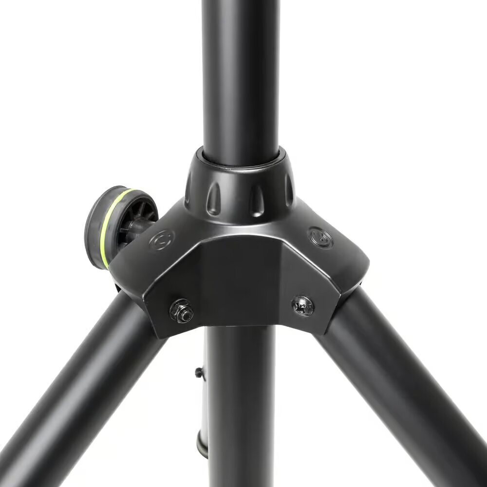 Der Gravity GSP 4722 B ist ein robuster Lautsprecherständer mit praktischem Kurbelgetriebe und Zahnstange, der Boxen bequem auf die gewünschte Höhe bringt. Er ist aus kräftigem Stahlrohr konstruiert, die drei Klappfüße sind an einer stabilen Manschette aus Aluminium-Guss aufgehängt.