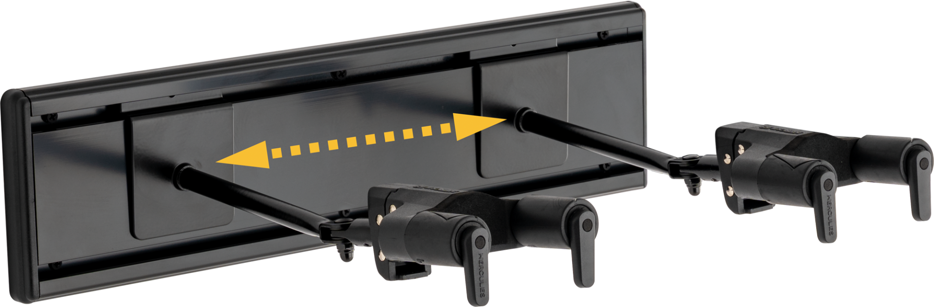 Das HERCULES Slatwall-Set HCGSP-402SB für 2 Gitarren ist perfekt für die hochwertige Präsentation der Instrumente zu Hause. Dieses Set besteht aus einem Slatwall-Paneel und zwei HCGSP-40SB+ Langarm Slatwall-Wandhaltern inklusive N.I.N.A. Halsbreitenadaptern.