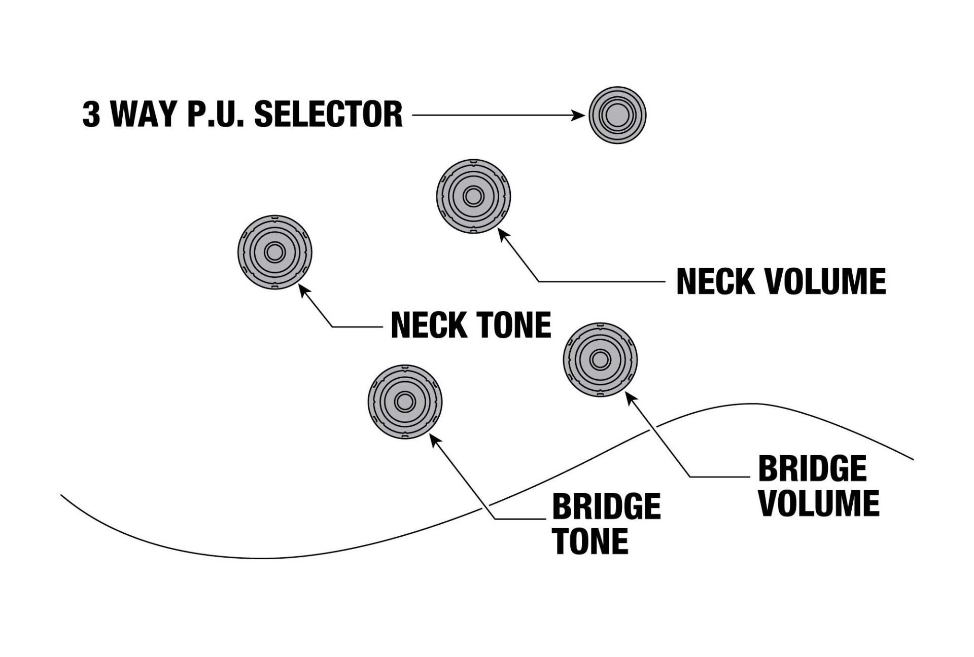 - Schaltungselemente: Lautstärke, Ton, Dreiwegschalter