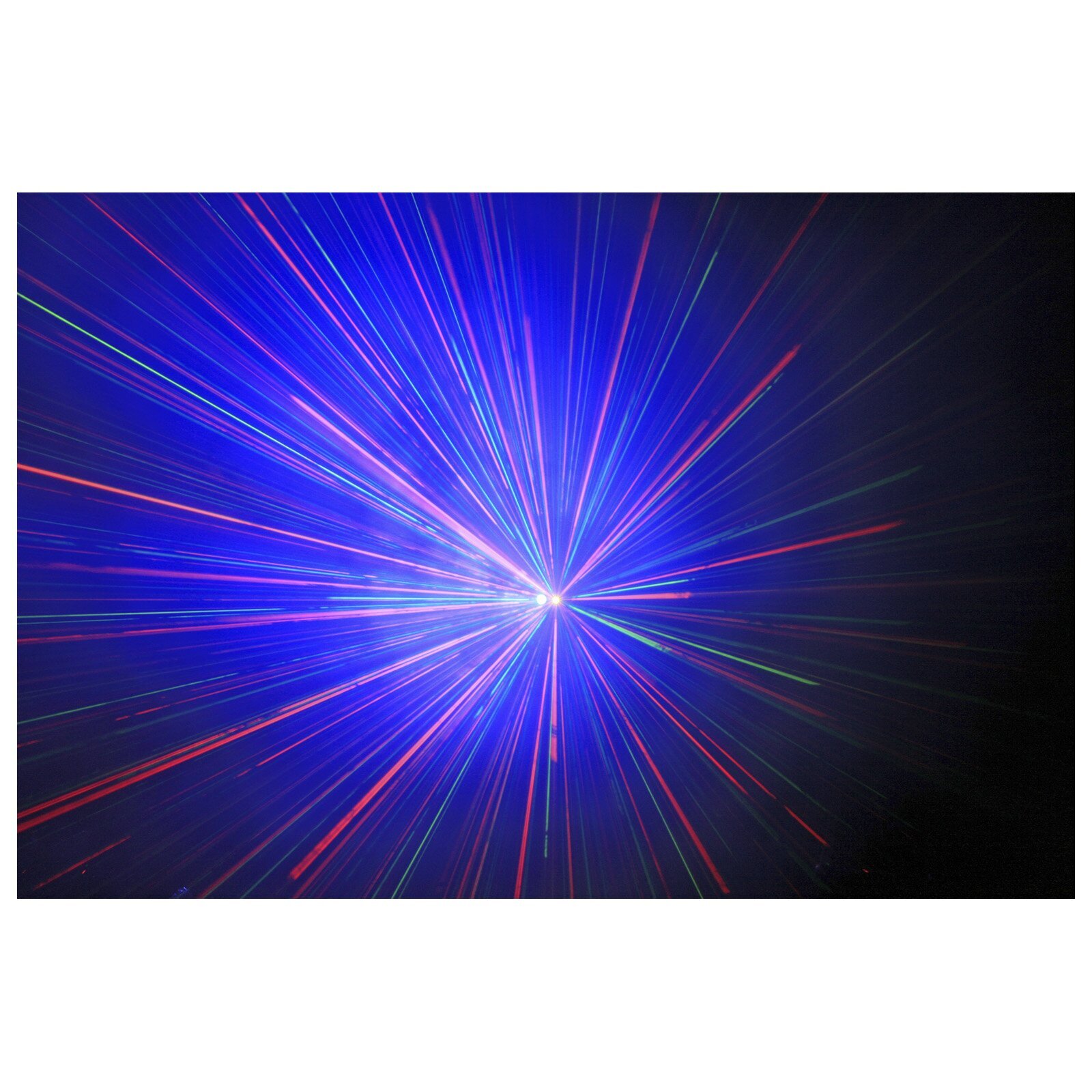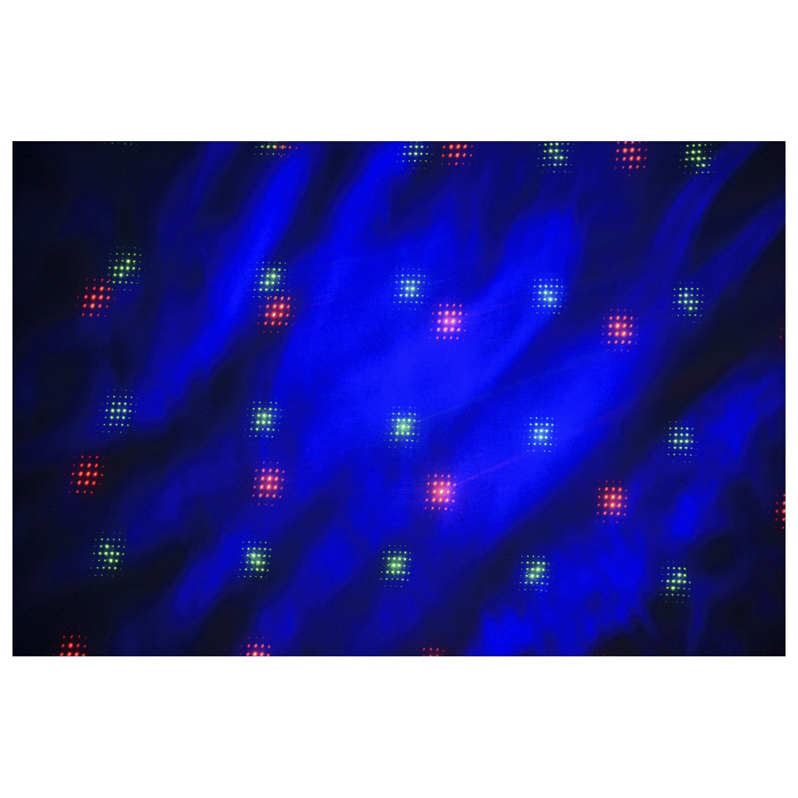 Das Beste aus zwei Welten: dieser fantastische Effekt setzt einen 40mW grünen + 150mW roten Laser der Klasse 3B, kombiniert mit einem schönen Water Wave LED Projektor (Wasserprojektor) ein. Durch eine spezielle Rasterungstechnologie werden die Strahlen in eine große Anzahl einzelner Laserstrahlen aufgeteilt, die in alle Richtungen zeigen und so einen verblüffenden, raumfüllenden Effekt erzeugen.