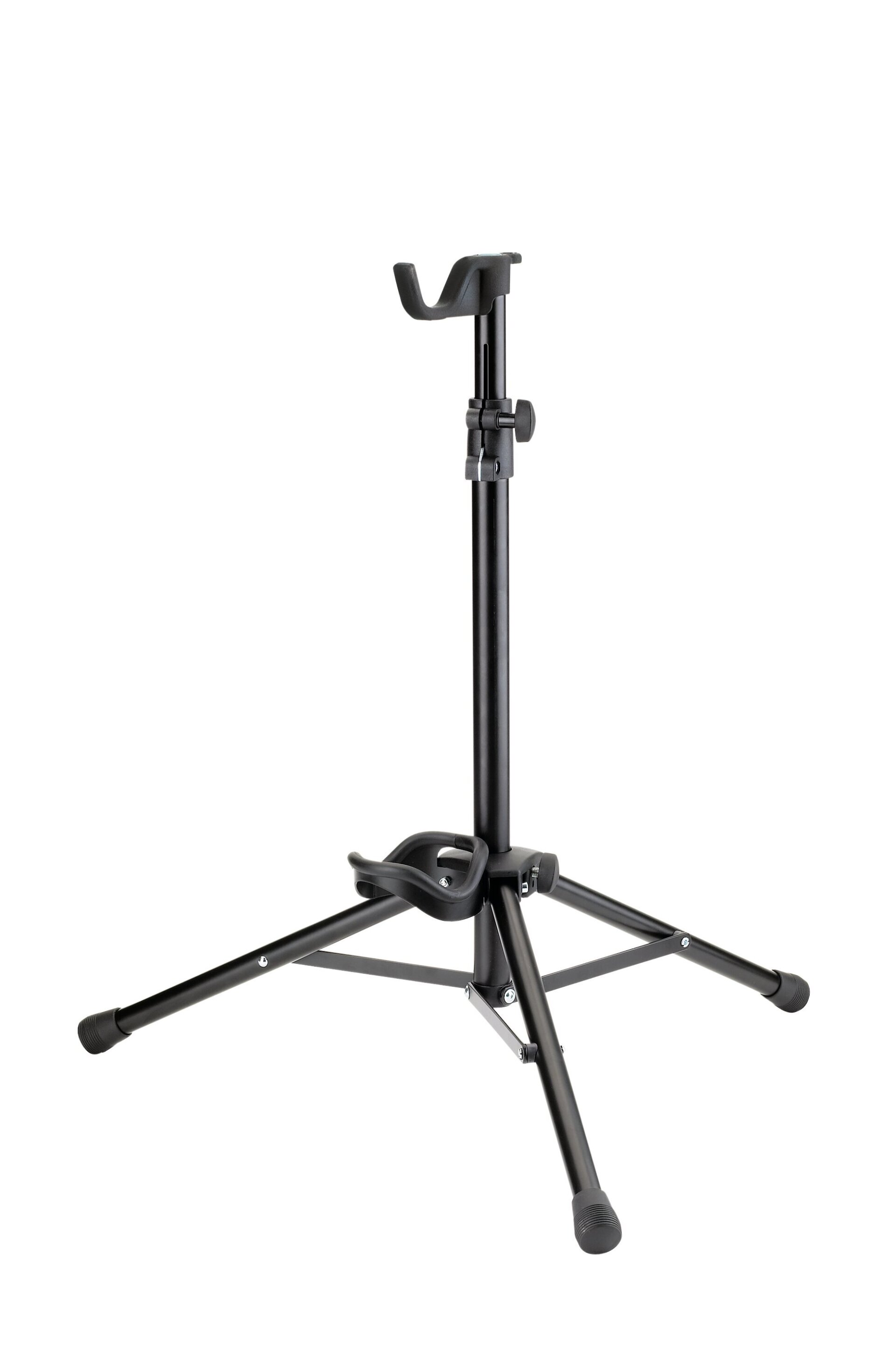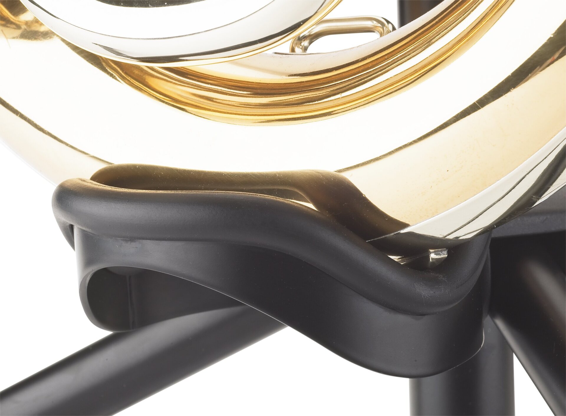 Die untere Instrumentenauflage ist ebenfalls eine Kombination aus stabilem Metall und weichem Gummiprofil. Somit wird das Instrument schonend aufgenommen und schützend in Position gehalten. Durch die stufenlose Höhenverstellung kann der Ständer individuell auf die Instrumentengröße angepasst werden.