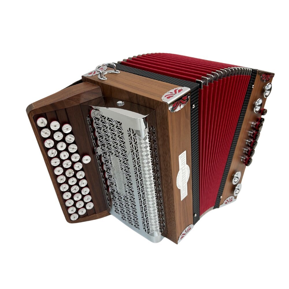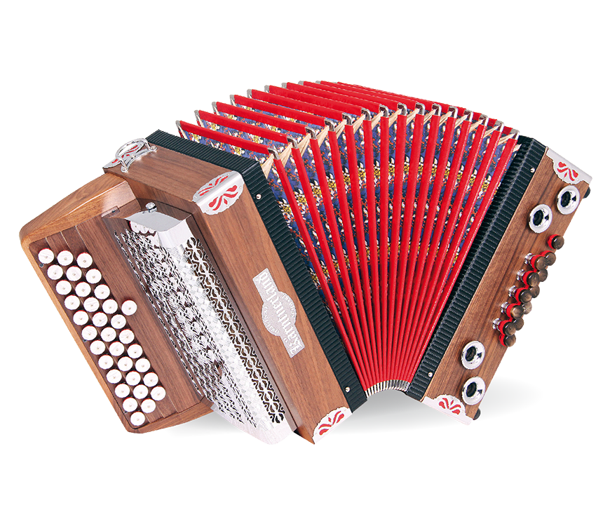 Für jede Altersgruppe der ideale Einstieg zum Bestpreis. Technisch ist sie absolut auf dem neuesten Stand und bietet nun mit dem Zusatzknopf in der 4. Reihe, einem Mollbass auf Zug und einem Halbton am Diskant eine einmalige Mehrausstattung ohne Aufpreis.