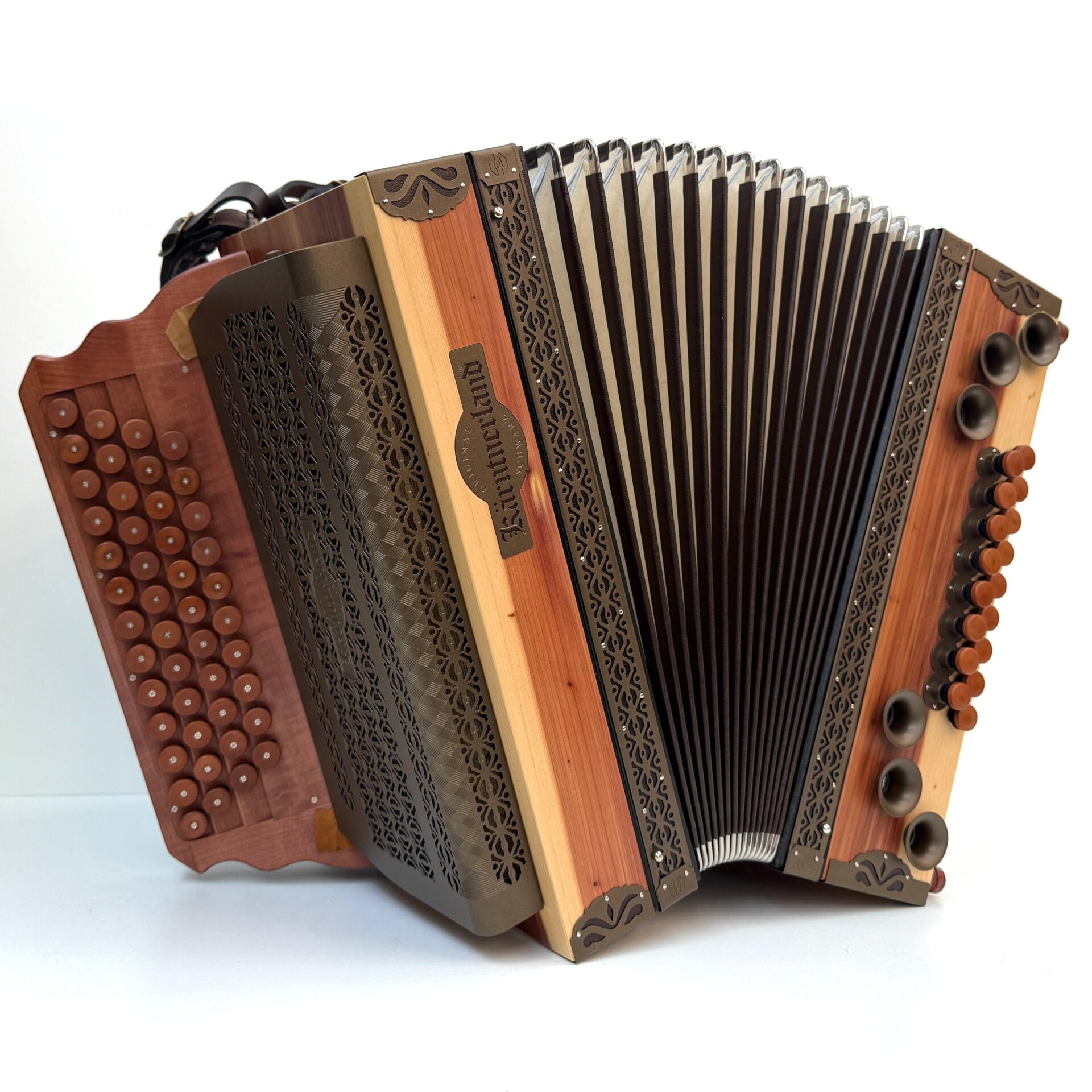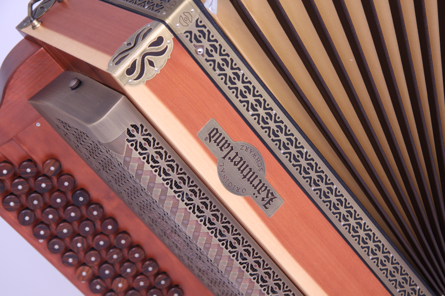 Von Vorteil sind auch die speziellen Echtholzknöpfe am Diskant und Bass mit ihrer griffgünstigen Oberfläche, die wir gerne auf Wunsch montieren.