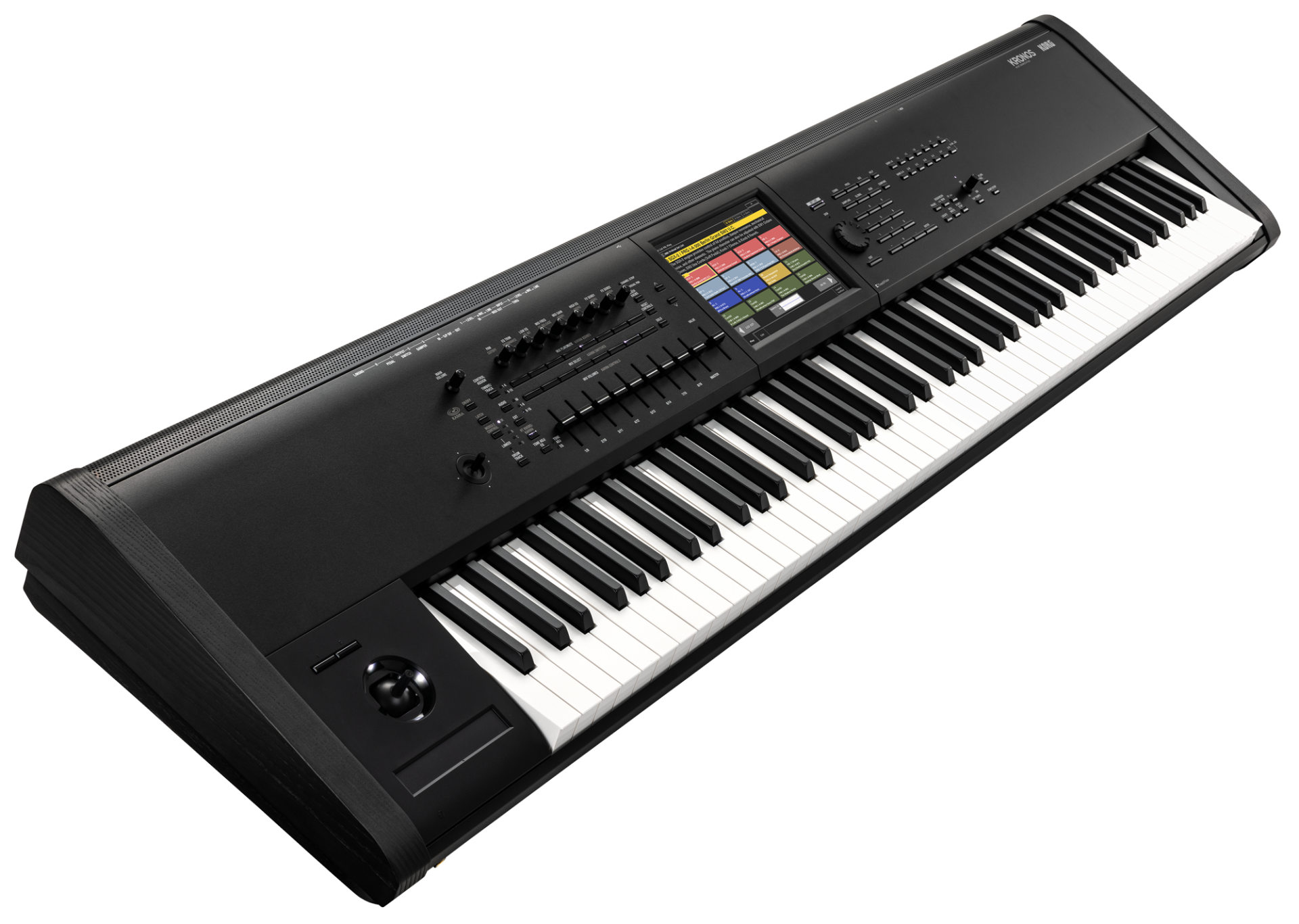 Für besonders ausdrucksstarkes Spiel stellt der KRONOS eine Vielzahl an Spielhelfen und Echtzeit-Modulationsquellen bereit, darunter eine anschlagsdynamische Tastatur mit Aftertouch, frei programmierbare Fader, Drehregler und Taster, einen X-/Y-Joystick, einen zusätzlichen Vektor-Joystick sowie einen intuitiv zu bedienenden Ribbon-Controller. Durch seine optimierte Systemarchitektur arbeitet er in seiner dritten Generation schneller als je zuvor, was sich unter anderem in einer deutlichen Verkürzung der Startzeit bemerkbar macht.