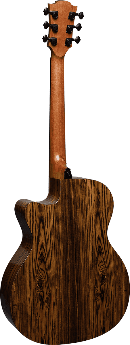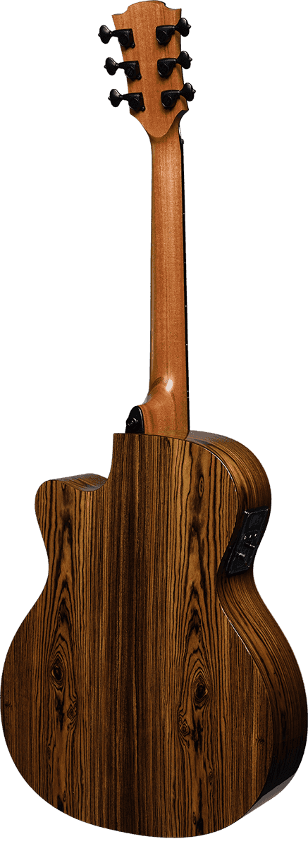 Die THV30DCE kommt mit raffinierten Details und akustisch optimierenden Features: Jedes einzelne Holzstück wurde sorgfältig nach seinen klanglichen Eigenschaften sowie seiner ästhetischen Form ausgesucht. Die Decke besteht aus speziellem Bearclaw-Fichtenholz, das eine besondere Holzmaserung mit sich bringt, der eine höhere Stabilität nachgesagt wird. Zusammen mit ihrem schönen, tiefdunklen Bocote-Korpus sieht die THV30DCE unglaublich stilvoll aus und spricht gleichzeitig auch akustisch sehr gut an. Ihre vollen und reichhaltigen Mitten sowie die harmonisierenden Höhen und Tiefen sorgen für ein beeindruckendes Sustain.