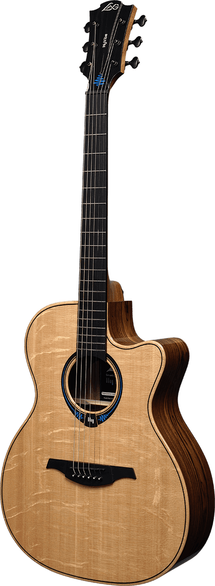 Für den Bau der THV30ACE kommen ausnahmslos selektierte Hölzer zum Einsatz, darunter die massive Engelmann-Bearclaw-Fichte für die Decke sowie fein gemasertes mexikanisches Palisander für Boden und Zargen. Diese erstklassigen Materialien werden von den Gitarrenbauern von Lâg nach optischen und klanglichen Aspekten handverlesen und mit einem Hochglanz-Finish versehen, der ihre Qualität auch optisch zur Geltung kommen lässt. Die Gitarre bietet einen Klang, der sowohl resonant in den Bässen und Tiefmitten ist, als auch artikuliert in den Höhen mit einem lebendigen Obertonspektrum.