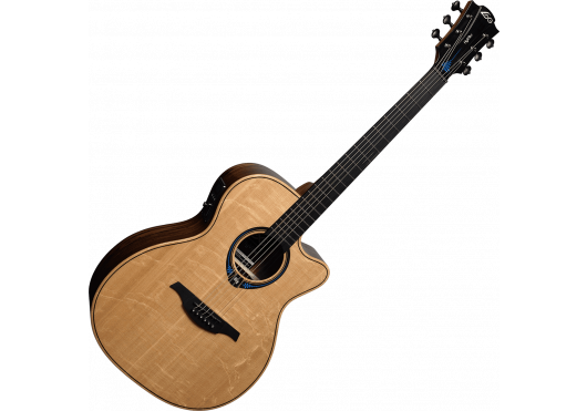 Die THV30ACE bietet die ikonische Ästhetik der Marke Lâg, etwa durch den schwarzen Graphit-Sattel und -Steg sowie die hochwertigen Druckguss-Mechaniken. Die Kombination aus der gemaserten Engelmann Bearclaw Fichtendecke, den Zargen und dem Boden aus mexikanischem Palisander und dem Hochglanz-Finish schafft ein optisch beeindruckendes Instrument, das seine Premium-Qualität widerspiegelt.
