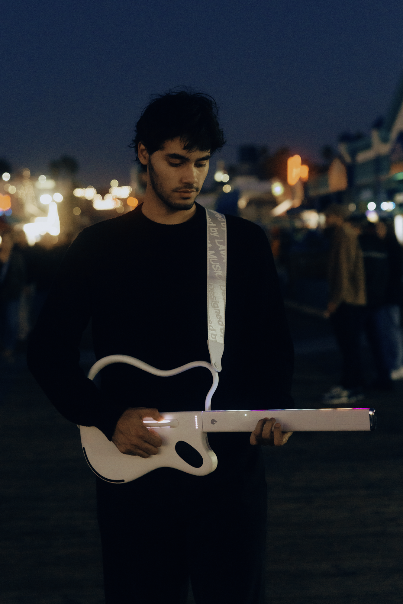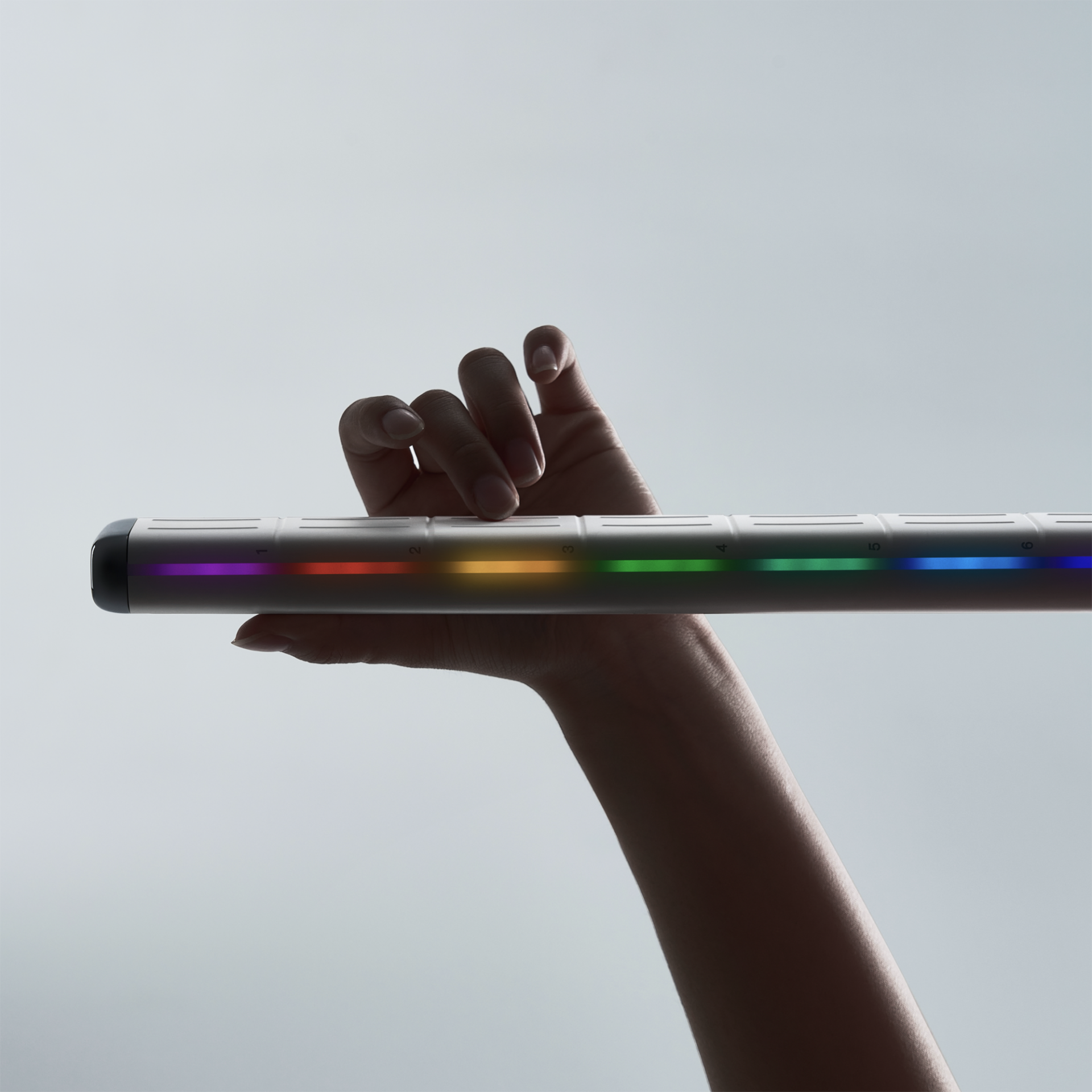 Das Multi-Touch Griffbrett und die Trigger zum Tippen sind so intuitiv, dass du nach spätestens 60 Sekunden deine ersten musikalischen Erfolge feiern kannst. Berühre das Griffbrett für Akkorde, Tippe auf die Trigger für den Rhythmus und streiche über die Punkte unten am Griffbrett, um einzelne Seiten zu spielen (Arpeggios).