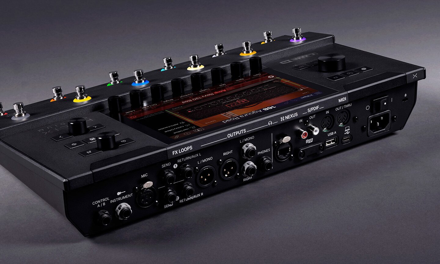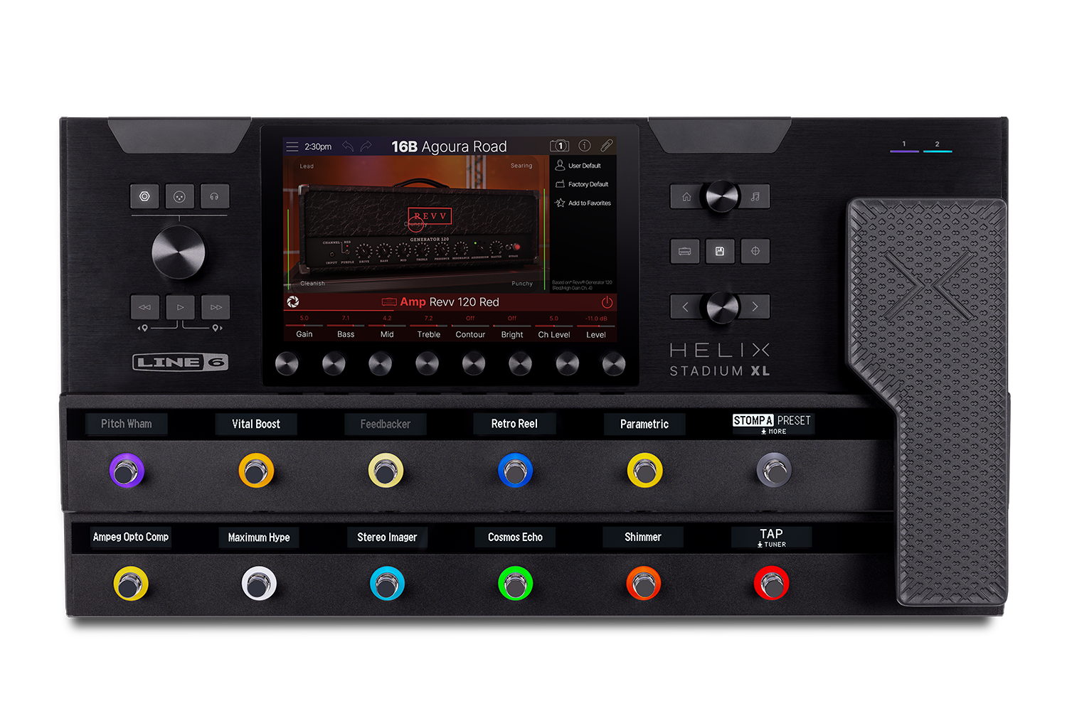 Helix Stadium XL Floor, der umfassendste und integrierteste Gitarrenprozessor, den Line 6 je entwickelt hat. Das umfangreiche Hardware-Paket umfasst einen hochauflösenden 8-Zoll-Touchscreen, 12 kontrastreiche OLED-Scribble-Strips und ein präzises Expression-Pedal mit Zehenschalter. Es bietet umfangreiche Anschlussmöglichkeiten, darunter verschiedene analoge und digitale Audioein- und -ausgänge.