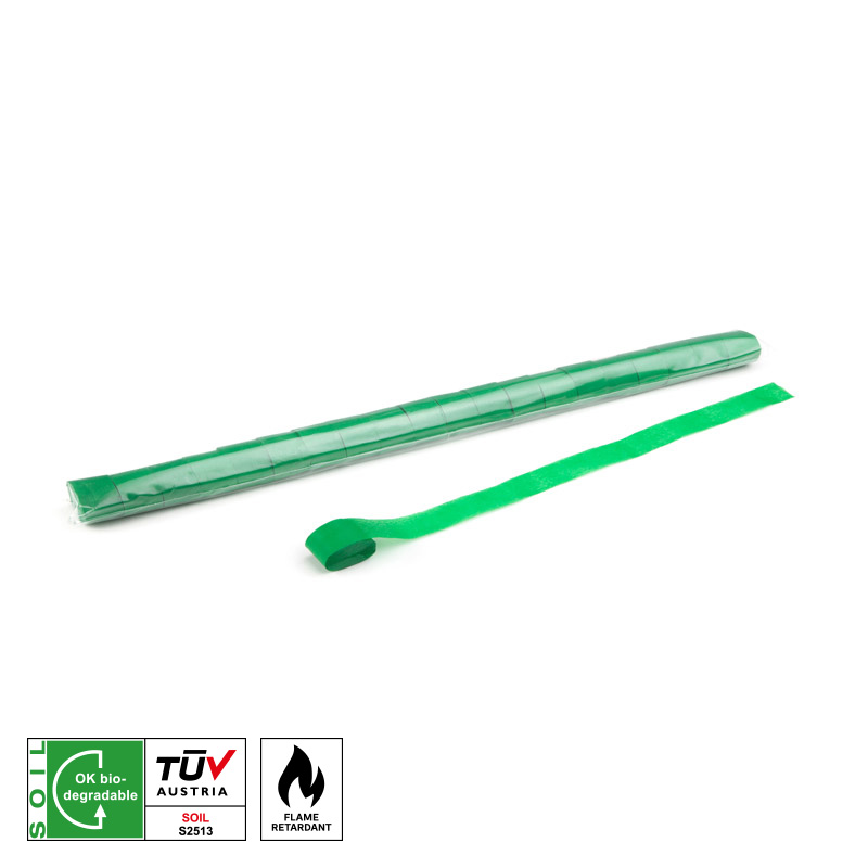 Hochwertige, schwer entflammbare (B1) MAGIC FX Papierstreamer für den professionellen Einsatz. Die Farben Dunkelblau, Dunkelgrün, Hellblau, Hellgrün, Mehrfarbig, Orange, Rosa, Violett, Rot, Schwarz, Weiß und Gelb sind vom TÜV als biologisch abbaubar zertifiziert.