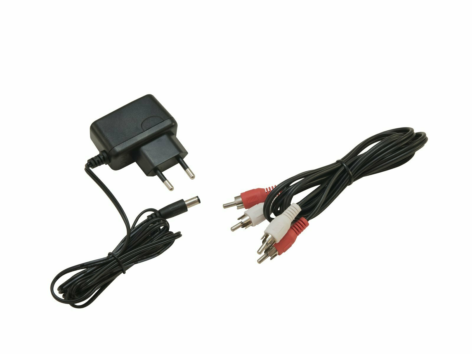 - 1 x Gerät, 1 x Externes Netzteil, 1 x Cinchkabel, 1 x Bedienungsanleitung, 1 x Konformitätserklärung