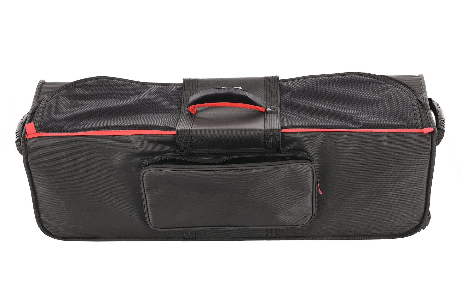 Das exklusive Side Protection System (SPS) bietet enormen Schutz durch seitliche Fiberglas-Einlagen und 20 mm starken High-Density-Schaumstoff. Der Boden ist vollständig mit Gummiprotektoren bewährt. Im Inneren sorgt eine weiche Fleece-Fütterung für schonenden, kratzfreien Transport. Sicher in der Hand, im Auto, im Tourbus.