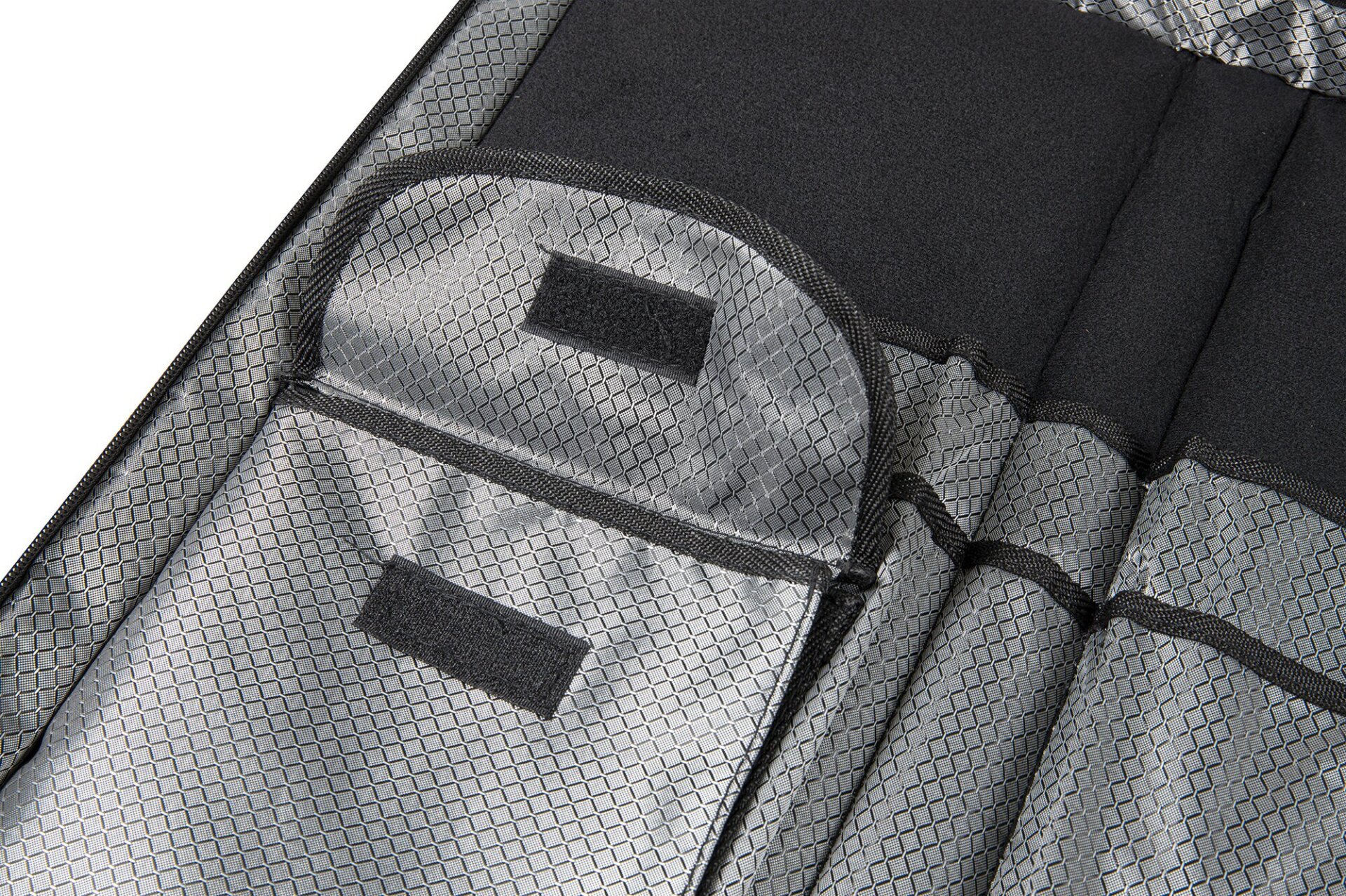 Das exklusive Side Protection System (SPS) bietet enormen Schutz durch seitliche Fiberglas-Einlagen und 20 mm starken High-Density-Schaumstoff. Der Boden ist vollständig mit Gummiprotektoren bewährt. Im Inneren sorgt eine weiche Fleece-Fütterung für schonenden, kratzfreien Transport. Sicher in der Hand, im Auto, im Tourbus.